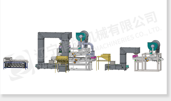 脫殼分選單元:上料斗、Z型斗式提升機、脫殼機(一次脫殼)、分選篩、C型斗式提升機(提升未脫開原料至二次脫殼機)、脫殼機(二次脫殼)。